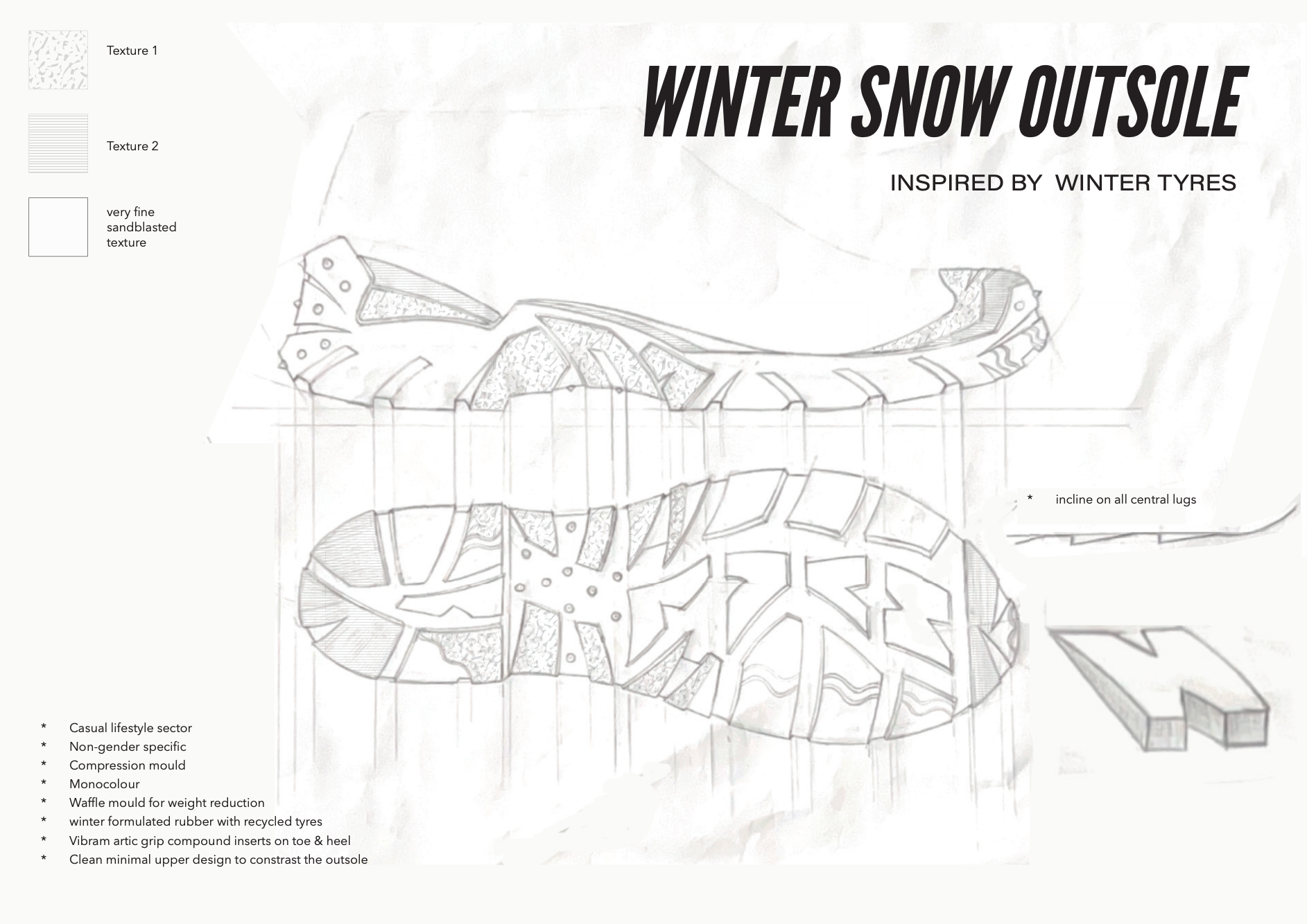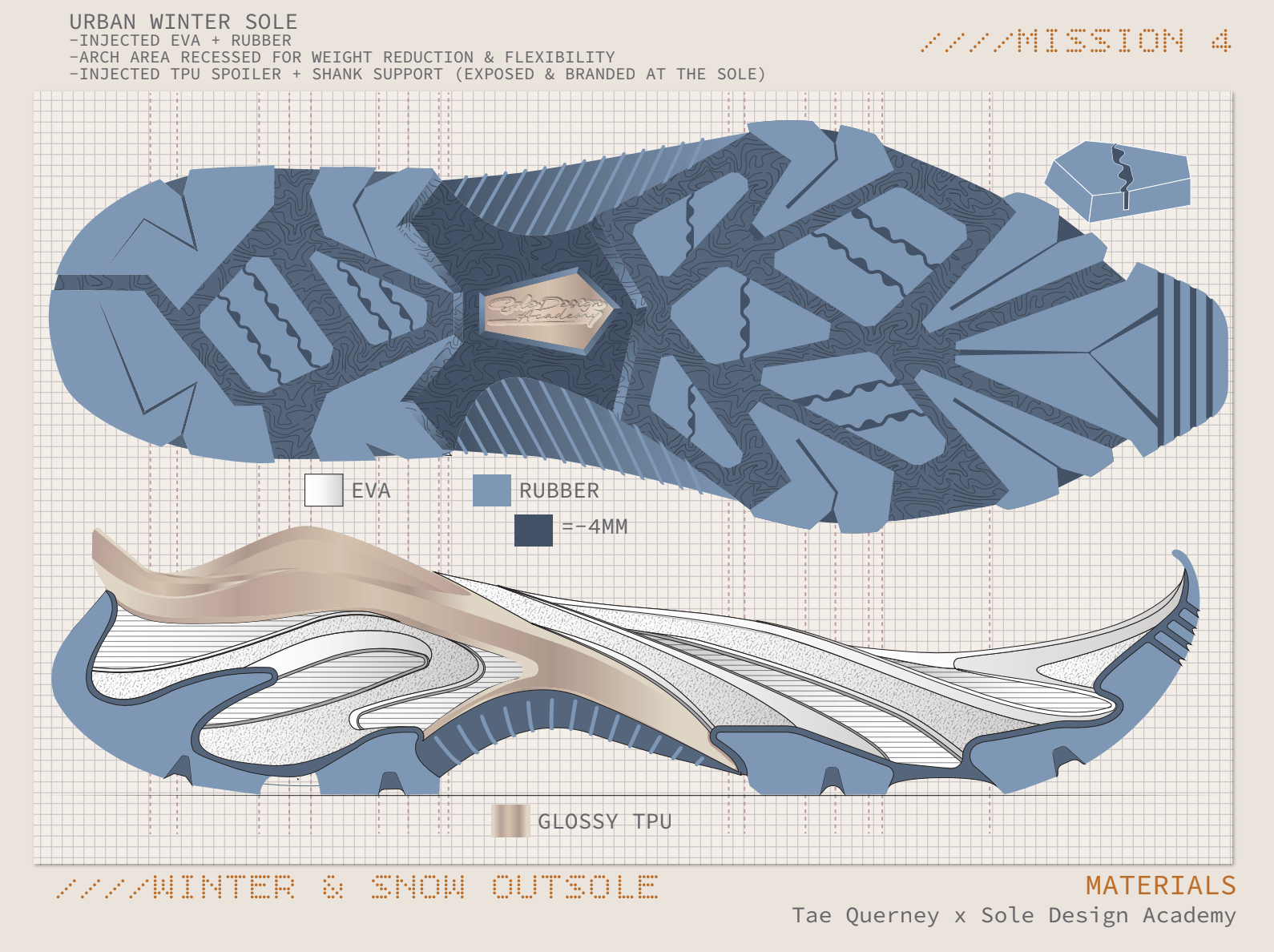 You’ll master the full sole design system, access to the Technical Resource Library, design your own trekking and sneaker soles using our structured briefs, and receive live feedback during our monthly group critique sessions.
